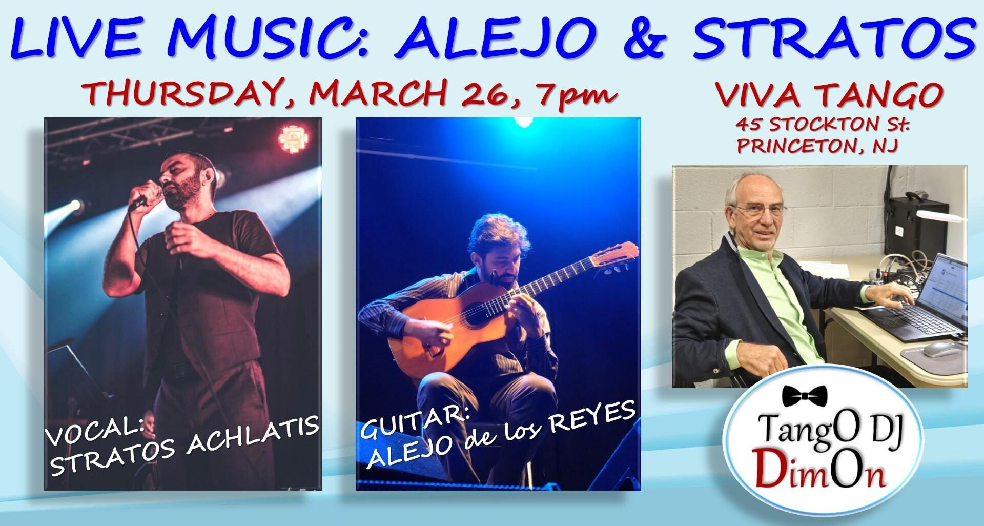 Dance to live music by Guitarist Alejo de los Reyes and Vocalist Stratos Achlatis on March 26th.