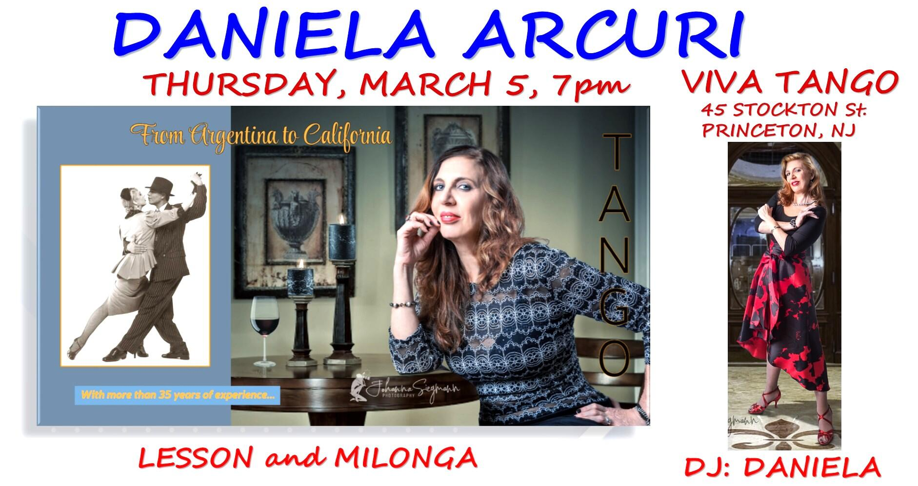 Thursday, March 5th. Choreographer, Teacher, Producer and Tango Performer for over 35 years, Daniela Arcuri grew up in the heart of Buenos Aires. Her ability to connect movement and emotion with the music have earned her top accolades. Daniela graduated with honors from the prestigious “Escuela Nacional de Danzas”, where she received a Master of Dance Teacher degree and began teaching, choreographing and performing in all forms of dance.