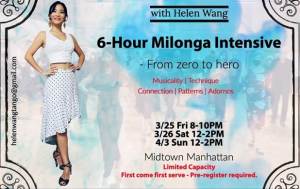 April 21st Will feature a Performance by Helen Wang and James Archambault. They will also teach a lesson and host a milonga.