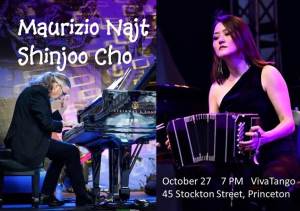 Thursday October 27th Milonga with Live Music. Maurizio Najt, Piano, is a graduate of the Conservatorio Nacional de Música in Buenos Aires. He performed with “Amigos del Tango” and Forever Tango Orchestra at venues such as Lincoln Center Plaza, Alice Tully Hall, Winter Garden, and the Argentine Embassy in Washington DC and Tokyo. Shinjoo Cho, Bandoneon, is co-founder of the Philadelphia-based Oscuro Quintet, formed to perform tango. She is a member of the all-women tango music and dance company GlamourTango, and she is a member of the New York’s Astoria Tango Orchestra. During her 2014-2016 residency in Argentina, Shinjoo performd solo on piano for the President of Argentina. Svetlana Howells will be the guest DJ this week. She will be playing a great mix of carefully crafted tandas and clever cortinas. Svetlana also crafts unique jewelry and will bring samples to view. See her TANGO COLLECTION.