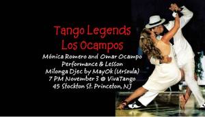 Thursday November 3rd Los Ocampo. Tango legends Mónica Romero and Omar Ocampo will teach and perform at VivaTango. Their motto is “dancing around the world”, which they have done for two decades as the lead dancers of their own traveling Tango Dance Company, Tango Bravo and as part of other international shows, including The Carlos Copes Tango Show, and Tango Pasión. They divide their time between teaching at their schools around the world, touring widely and performing at prestigious international venues. They are also official judges at the annual International Tango Championships in Argentina and other international competitions. Their charismatic stage presence and personalities, combined with their elegant style, creativity and extensive knowledge make them hugely popular with audiences and students alike. MayOk (aka Urszula), our international traveling DJ, has arranged to bring these Tango legends to VivaTango, and she will complete the event by playing her popular tandas for the milonga. EVENT LINK