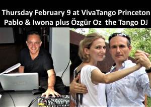 Thursday February 9th Milonga will feature Pablo Garcia Gomez & Iwona Ionescu who will teach a lesson titled “Milonga Time: Tricks for Effortless Milongas” Pablo and Iwona are the instructors for the Princeton Adult School Tango classes, and are popular instructors at VivaTango and other tango events. The Milonga will feature DJ Özgür Oz who will put you in your Tango Moment with his selection of tandas. All levels lesson starts at 7:00,