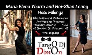 March will be a month of great dancing at VivaTango. It all begins with a milonga featuring Maria Elena Ybarra and Hoi-Shan Leung with DJ DimOn! Milonga will include a performance. There will be a lesson preceding the milonga.