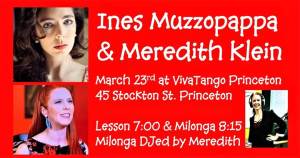 Thursday March 23rd Ines Muzzopappa and Meredith Klein will host the milonga and teach a lesson on “Opening and closing the embrace. The use of elasticity “. Ines is an internationally recognized Tango instructor known for her focus on technique, musical interpretation, quality of movement and connection. She incorporates elements of traditional and modern Tango in her teaching to give students tools to make their dance grow. Meredith organizes the many Tango events offered by the Philadelphia Argentine Tango School, and is an internationally known Tango instructor and dancer. Lesson $15, Milonga $15 or Both $20.