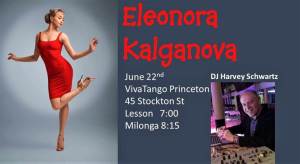 Thursday June 22nd will feature Eleonora Kalganova and guest DJ Harvey Schwartz. Eleonora is a spark of energy with a perky personality and expressive footwork that can make you laugh or tear for joy. She will teach a lesson at 7:00 and host the milonga. Harvey Schwartz is your guest DJ. He joins you from Washington, DC. He has participated in many tango events in prestigious venues in North America, Europe, and Argentina. As a DJ, Harvey strives to understand the feelings of the dancers in order to generate shared moods and invite them to a better place. Come dance to Harvey’s music. EVENT LINK