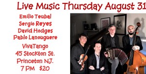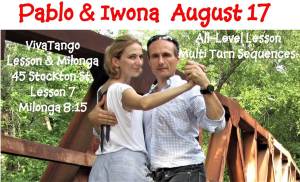 Thursday August 17th Pablo Garcia Gomez & Iwona Ionescu will teach a lesson on “Multi-turn sequences”. Pablo and Iwona are the instructors for the Princeton Adult School Tango classes, and they are popular instructors at VivaTango and other tango events. All levels lesson starts at 7:00, Milonga at 8:15. Lesson $15, Milonga $15, Both $20. EVENT LINK