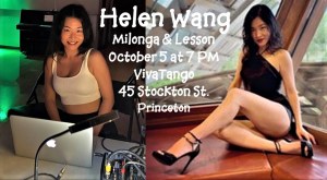 Thursday October 5th the Milonga will be hosted by Helen Wang. All levels lesson starts at 7:00, Milonga at 8:15. Lesson $15, Milonga $15, Both $20.
