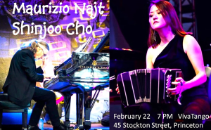 will feature Maurizio Najt on Piano and Shinjoo Cho. Shinjoo has recently returned from Buenos Aires where she recorded a solo Album. Milonga starts at 7 PM with music by DJ and Live Music starts at 8:30. $20