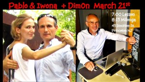 will feature a lesson by Pablo Garcia Gomez & Iwona Ionescu and a Milonga with DJ DimOn. Pablo and Iwona are the instructors for the Princeton Adult School Tango classes, and they are popular instructors at VivaTango and other tango events. Their lesson this week will be “The best shared axis turns”. This lesson will focus on different kinds of single access turns and how to use them in tango and vals. After the lesson Pablo and Iwona will be available at the side of the dance floor to help any dancers wishing more help with the lesson. DmiOn will DJ the milonga for your dancing pleasure. Lesson at 7 PM, Milonga at 8:15. Lesson $15 Milonga $15, Both $20.EVENT LINK