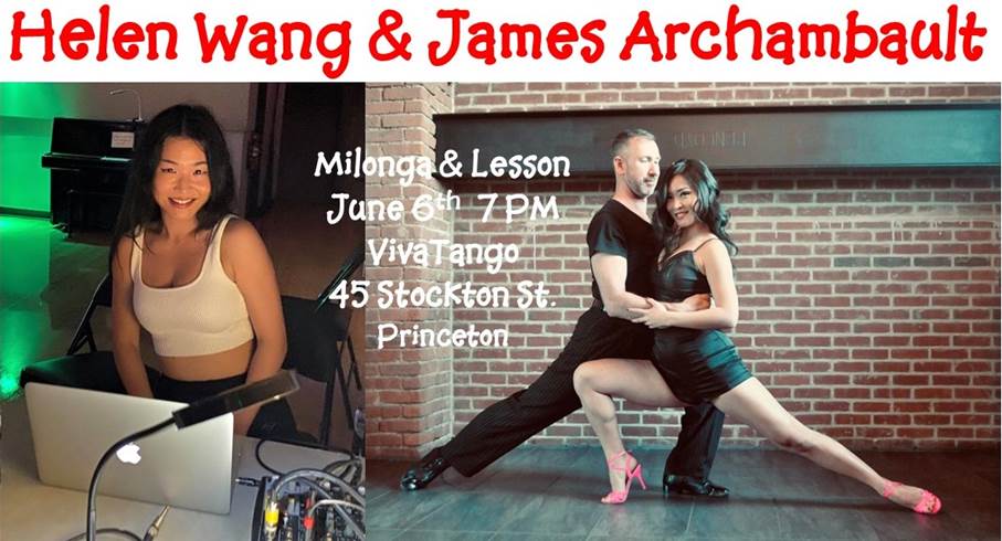 Thursday June 6th will feature Helen Wang and James Archambault. The milonga will follow the lesson. Helen is a popular Tango instructor and performer. She is the host of the Candle Light Milonga in Jersey City. All levels lesson starts at 7:00, Milonga at 8:15. Lesson $15, Milonga $15, Both $20