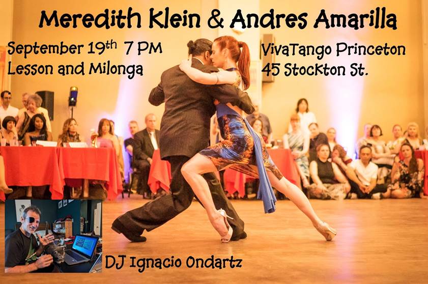 Thursday September 19th DJ Ignacio Ondartz hosts milonga and Meredith Klein and Andres Amarilla teach a lesson. Meredith is the founder of Philadelphia Argentine Tango School (PATS). She is a popular instructor, performer and the organizer of the annual Philadelphia Tango Festival. Andres was born and raised in Buenos Aires. He studied with and performed in the dance companies of three of the greatest tangueros of all time: Gustavo Naveira, Juan Carlos Copes, and Rodolfo Dinzel. Introducing Ignacio is a well-known instructor, performer and DJ from Buenos Aires. Ignacio will be the host DJ for the milonga. 7:00 Lesson $15, 8:15 Milonga $15, Both $20. EVENT LINK