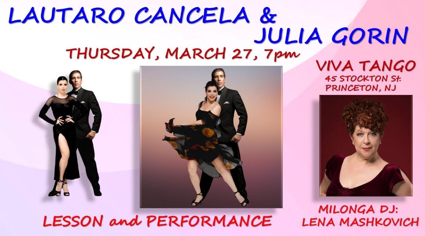 March Madness Milongas continue on our dance floor with three more milongas and ending with a performance and lesson by Lautaro Cancela and Julia Gorin, plus DJ Lena Mashkovich on March 27th.