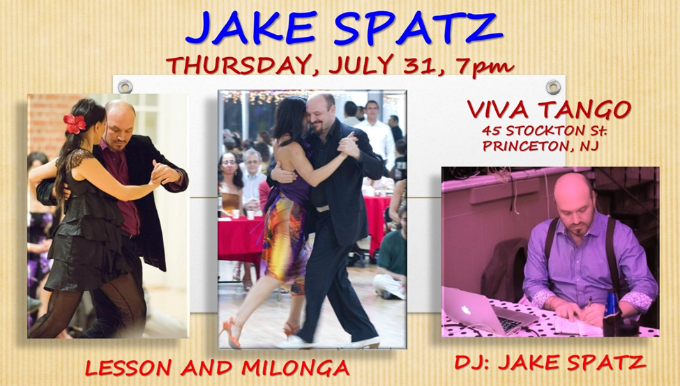 Don’t miss this Thursday’s milonga and lesson hosted by Jake Spatz. Read all about Jake and the details of all the events in the descriptions below.
