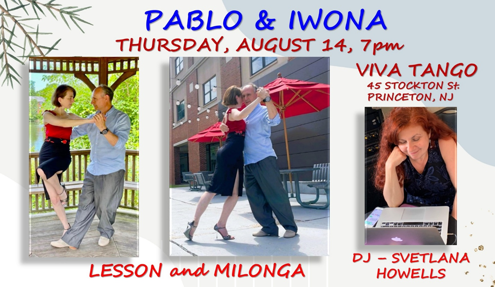 This Thursday will feature a lesson by Pablo and Iwona and a milonga hosted by Svetlana Howells.