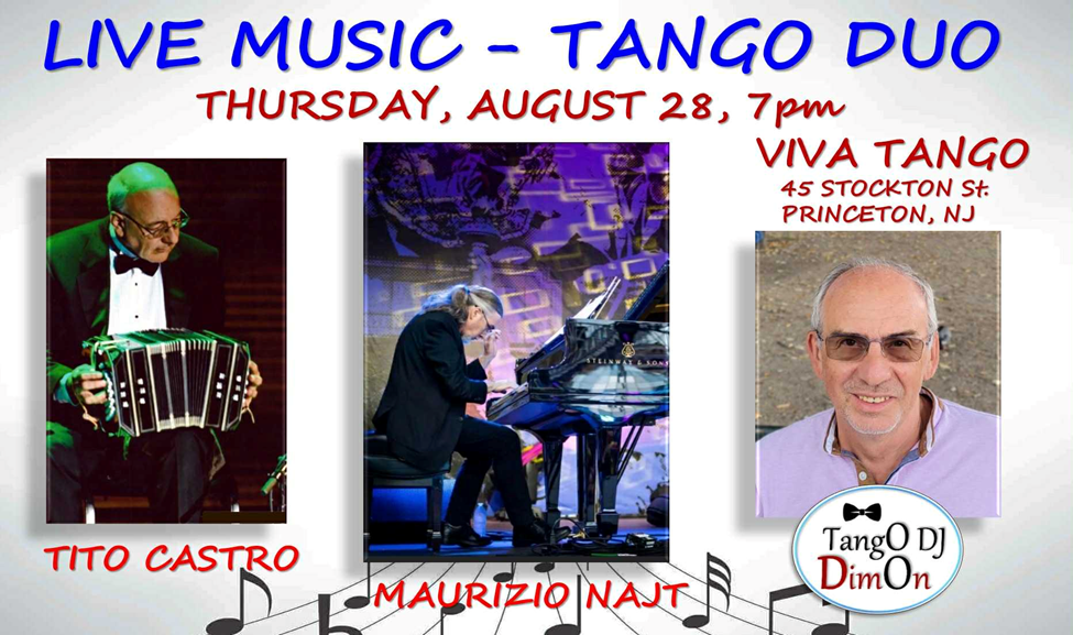 This Thursday, August 28th, will feature live music by the living legend, Tito Castro, on bandoneon; and Maurizio Najt, on piano. Maurizio is a highly respected tango musician performing with the best groups here and internationally.
