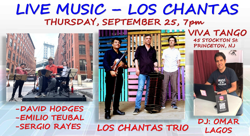 We’ll close out September with a special night of live music by the multinational tango trio, Los Chantas.