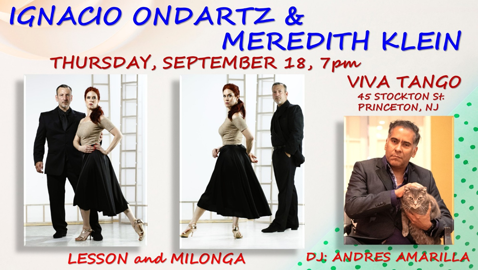 Thursday, October 16th. Meredith Klein and Andres Amarilla are frequent instructors and performers (together or individually) at Viva Tango. Meredith is the founder of Philadelphia Argentine Tango School (PATS). She is a popular instructor, performer and the organizer of the annual Philadelphia Tango Festival. Andres was born and raised in Buenos Aires. He studied with and performed in the dance companies of three of the greatest tangueros of all time: Gustavo Naveira, Juan Carlos Copes, and Rodolfo Dinzel. Tonight’s DJ will be Ignacio Ondartz. His music selections are always heartwarming and will keep us dancing and wanting for more.