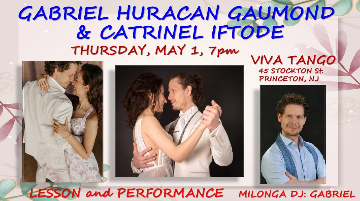 Thursday, May 1st. Gabriel Huracan Gaumond & Catrinel Iftode come from Washington DC. Their dance style has been characterized as very romantic. Gabriel taught and performed for over a decade throughout North America. He believes that tango is a language we speak with our bodies. His focus is musical interpretation using the body as a medium for expression and the mechanics of connection. Catrinel sees tango as an excellent tool for personal growth. She hopes that through her teaching and dancing she can help others to feel confident, empowered and comfortable in their own skin.. More details about future events follows in the event descriptions and links below.