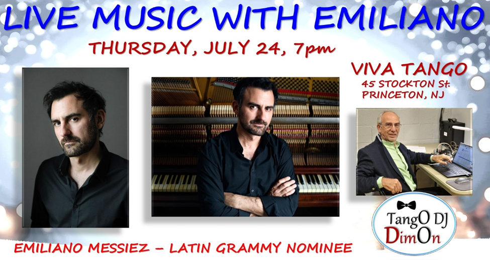 Thursday, July 24th.Emiliano Messiez is a Latin Grammy Nominee pianist and composer. With a very versatile and personal sound, he is the founder and director of the Orchestra Típica Messiez, a 10-piece tango orchestra. He has performed all around the world in venues such as The Lincoln Center, The Metropolitan Museum of New York and The Houston Opera Theater, among others. Emiliano has written original music and recorded multiple albums that showcase his unique artistic vision. DimOn will be milonga DJ and will play his upbeat tandas to compliment the live music sets.