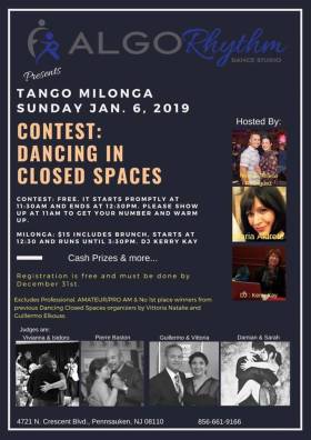 Four-time US Tango Championships finalists, Jacklyn Shapiro and Roberto Pena will teach a lesson on “Turn the Torso: Unique Salon Figures ”. A Milonga DJed by Roberto and Jacklyn will follow the lesson.